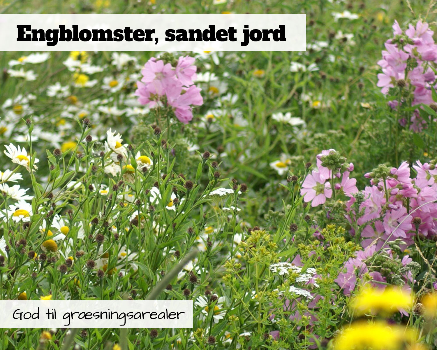 Blomsterblanding med engblomster sandet jord er en blanding af frø til planter, der er velegnede til enge og lignede arealer. Denne blanding er også god til græsningsarealer, da den ikke indeholder planter som er giftige for græssende dyr. Og så indeholder den naturligvis kun planter som insekterne er glade for.