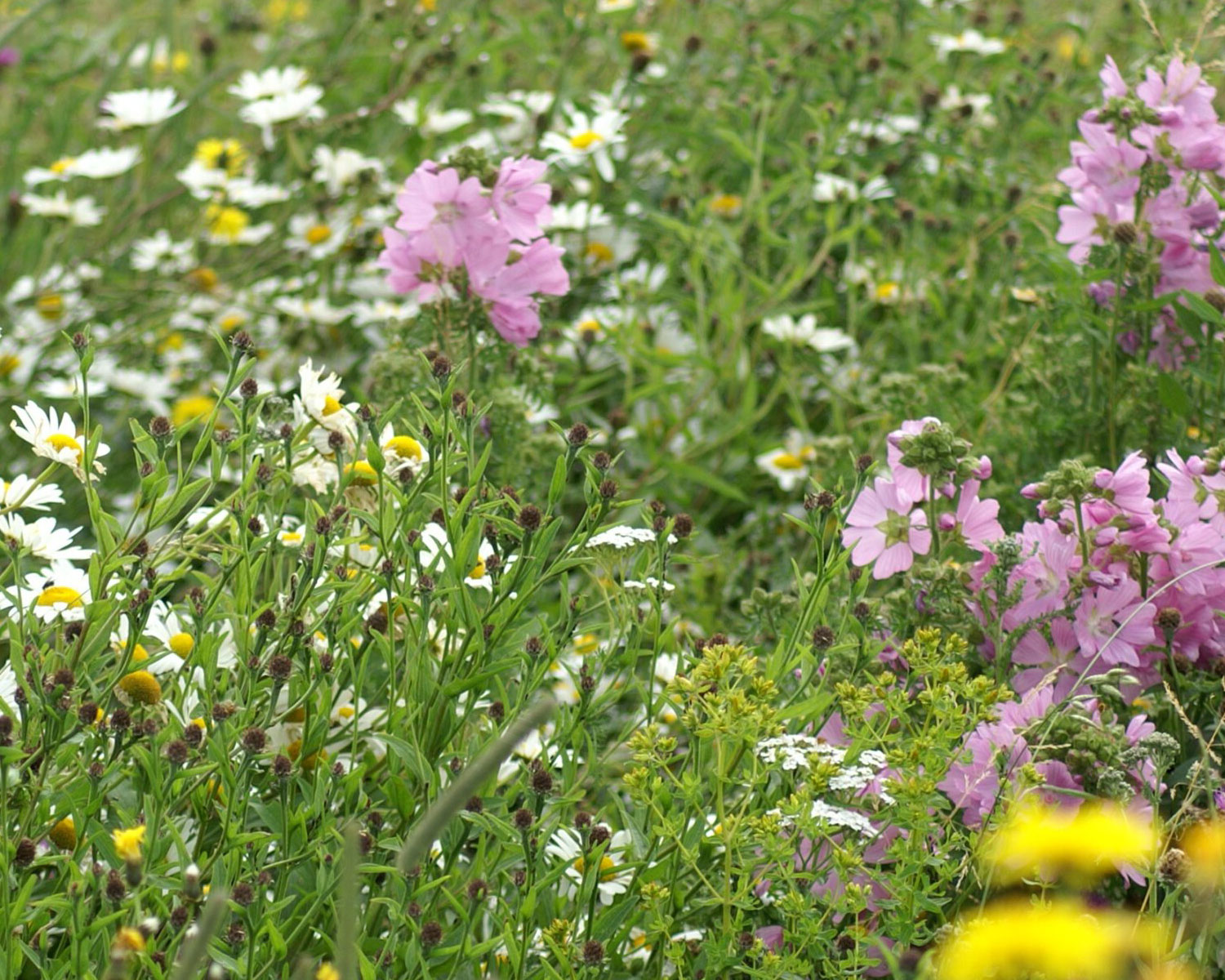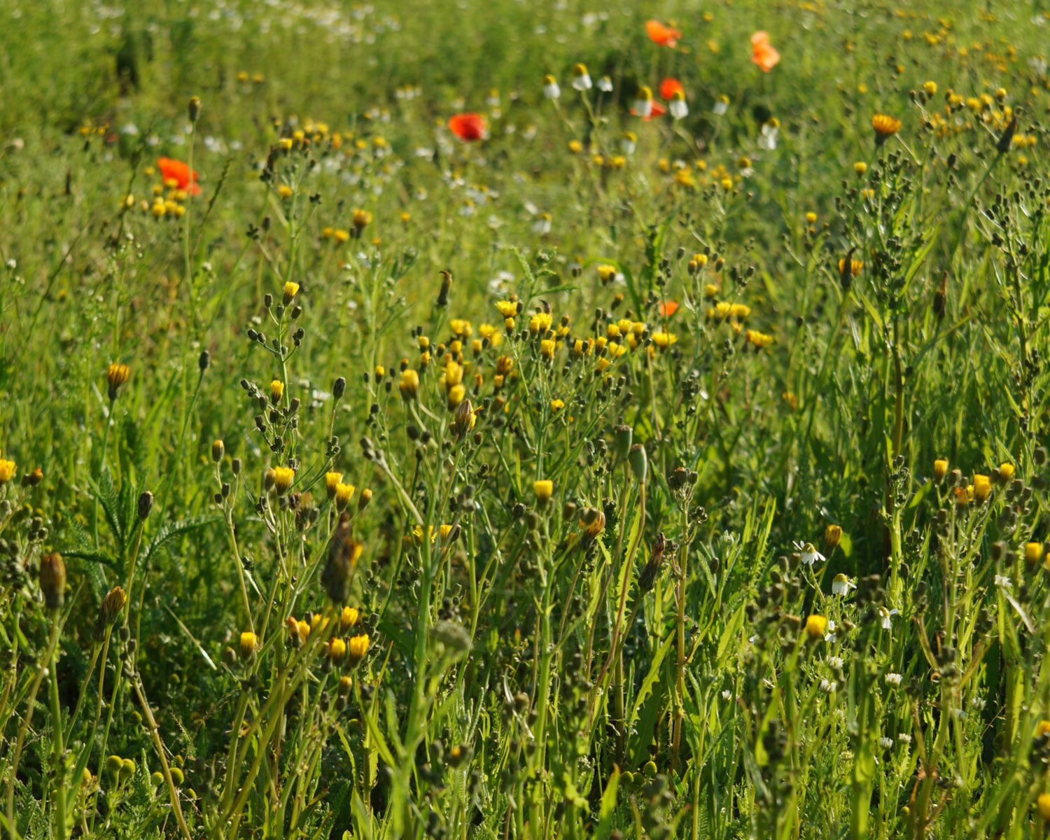 Et- og toårige planter: Humle-Sneglebælg, Medicago lupulina | Kommen, Carum carvi | Moskus-Katost, Malva moschata | Smalbladet Vikke, Vicia sativa ssp. nigra | Toårig Høgeskæg, Crepis biennis | Vellugtende Kamille, Matricaria chamomilla | Vild Gulerod, Daucus carota