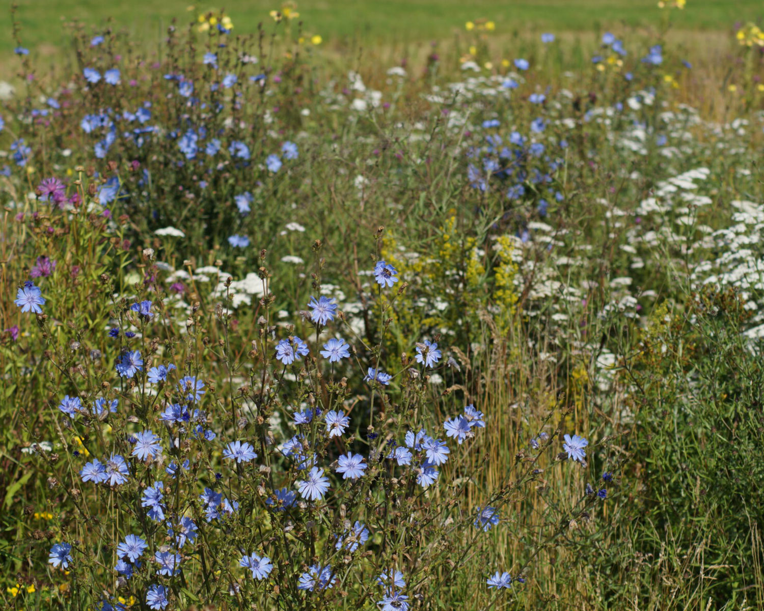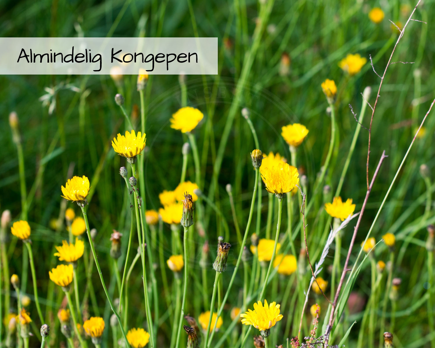 Flerårige planter: Almindelig Brunelle, Prunella vulgaris | Almindelig Knopurt, Centaurea jacea | Almindelig Kongepen, Hypochaeris radicata | Almindelig Kællingetand, Lotus corniculatus | Almindelig Røllike, Achillea millefolium | Almindelig Torskemund, Linaria vulgaris | Blodstillende Bibernelle, Sanguisorba minor ssp. minor | Blåhat, Knautia arvensis | Cikorie, Cichorium intybus | Gul Snerre, Galium verum | Hjertegræs, Briza media | Hvid Okseøje, Leucanthemum vulgare | Hvid-Kløver, Trifolium repens | Lancet-Vejbred, Plantago lanceolata | Liden Klokke, Campanula rotundifolia | Rødknæ, Rumex acetosella | Stivhåret Borst, Leontodon hispidus | Vild Kørvel, Anthriscus sylvestris