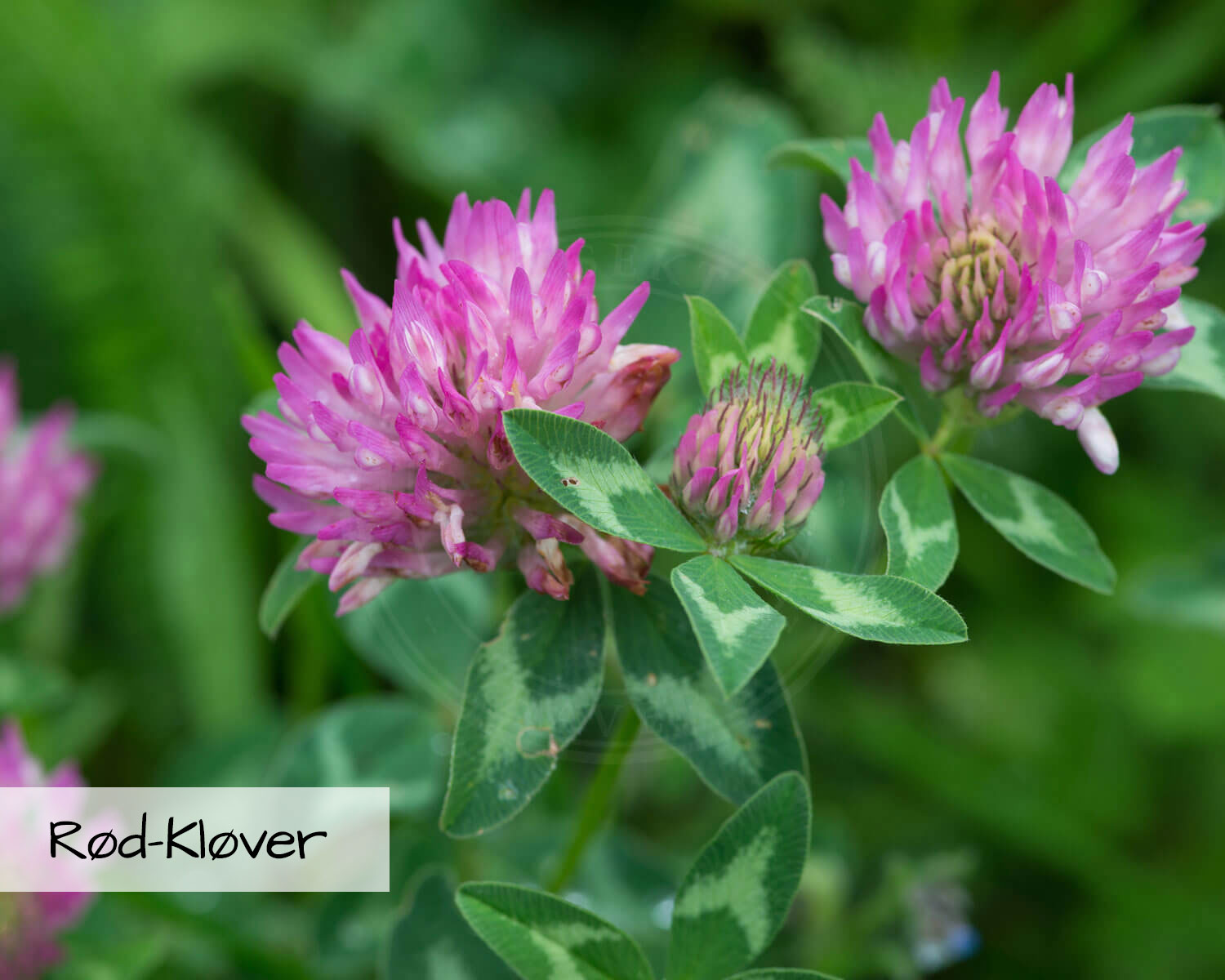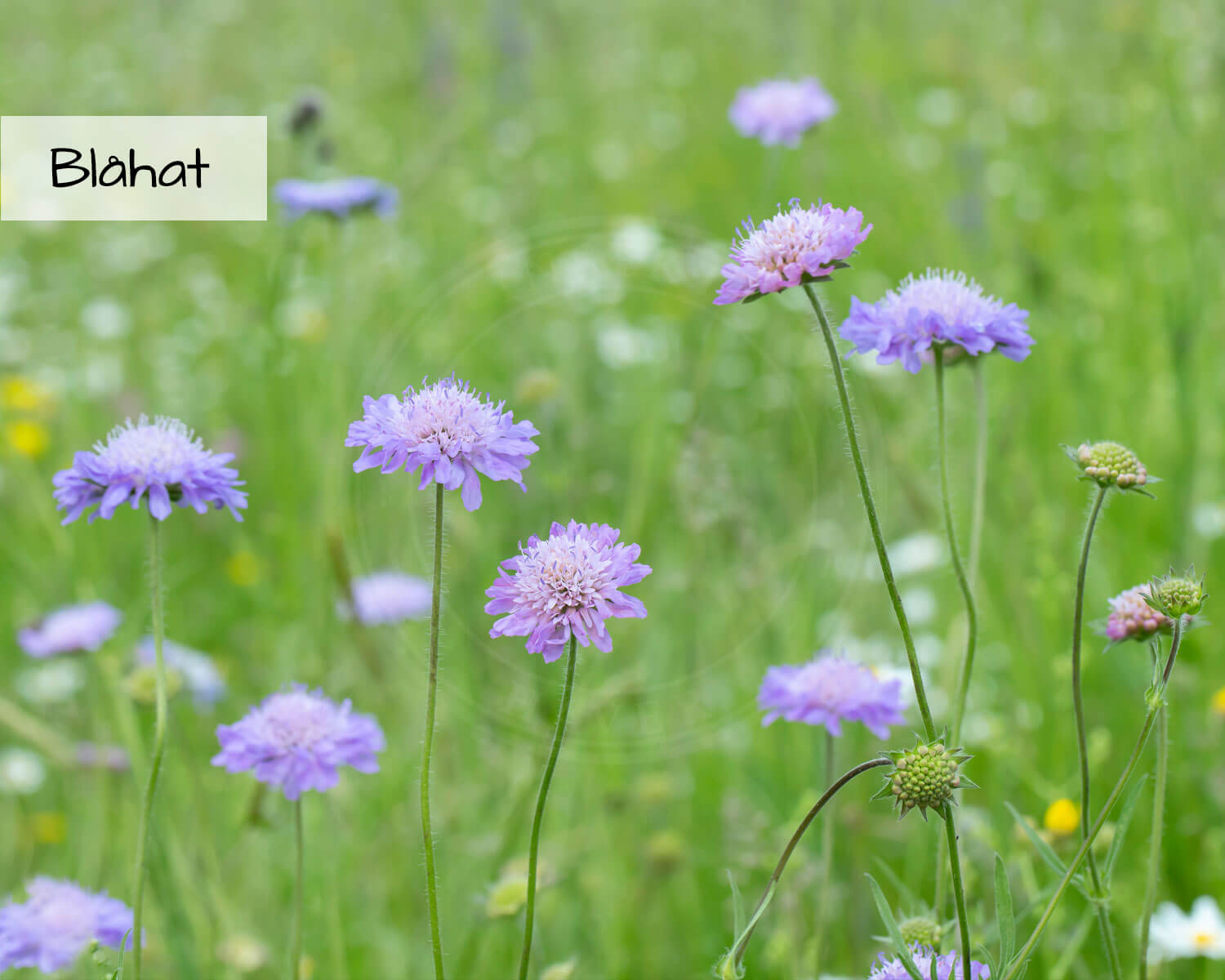 Flerårige blomster: Blåhat, Knautia arvensis – Rød-Kløver, Trifolium pratense – Rundbælg, Anthyllis vulneraria