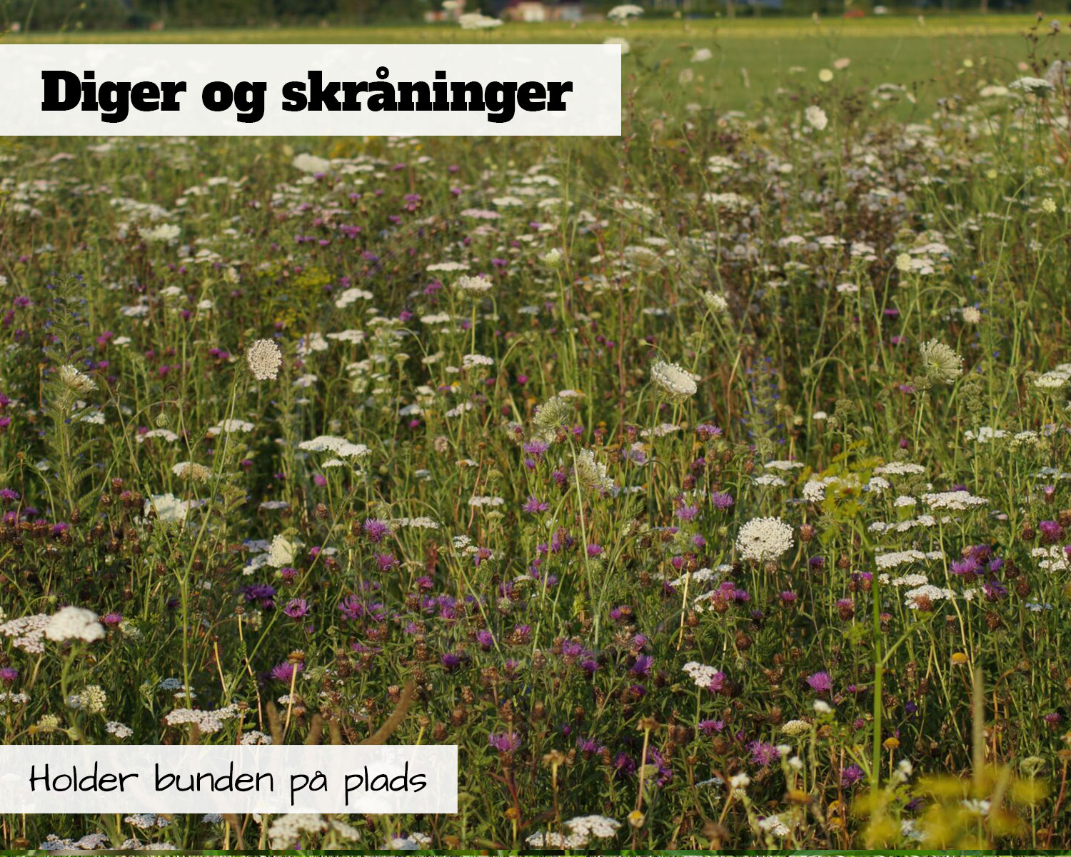 Blomsterblanding til diger og skråninger er udviklet specielt til arealer med meget kuperet terræn. Planterne er også alle af end type der holder jorden på plads – altså gør at jorden ikke skrider. Blandingen er meget velegnet til områder som baneskråninger og lignende arealer.