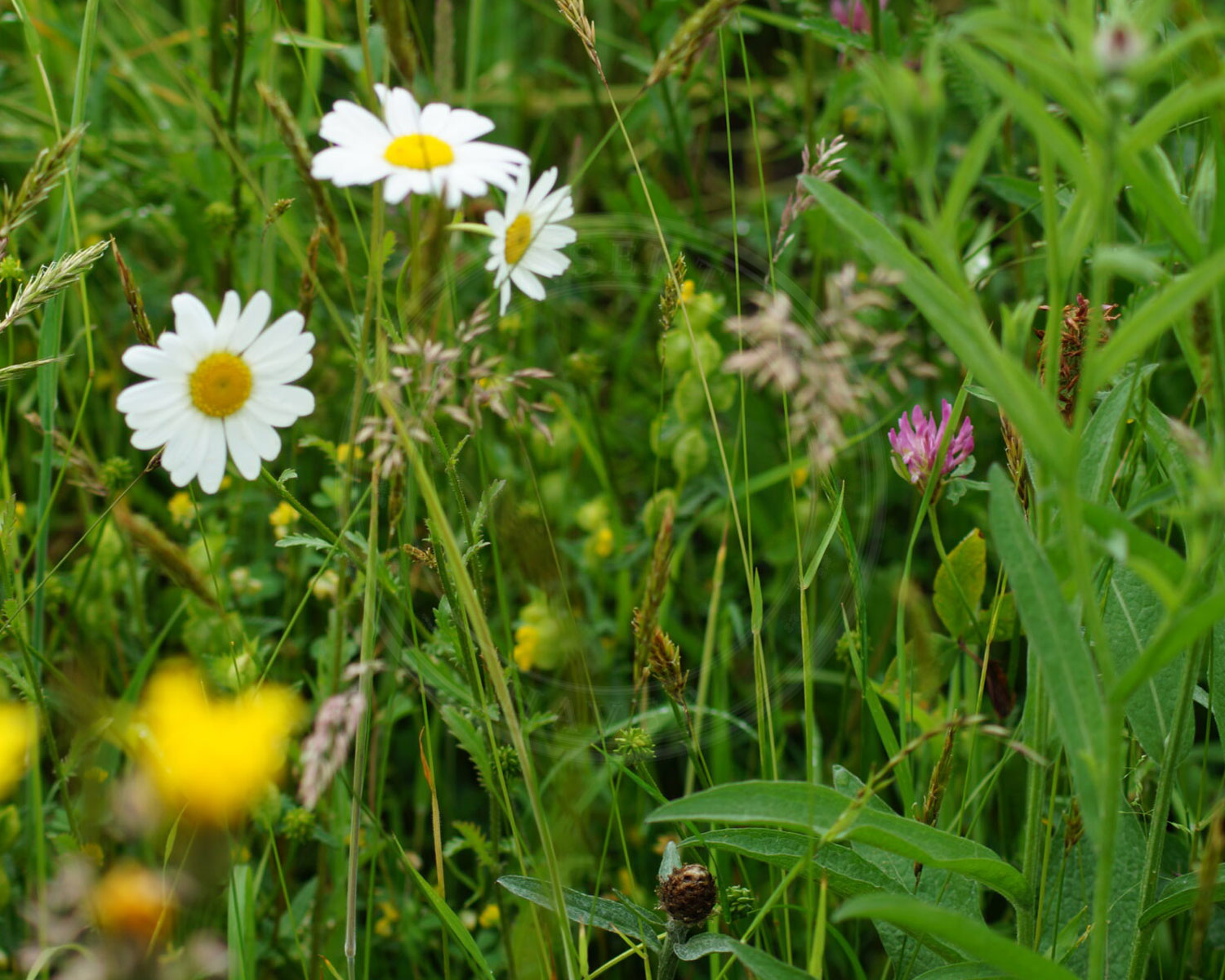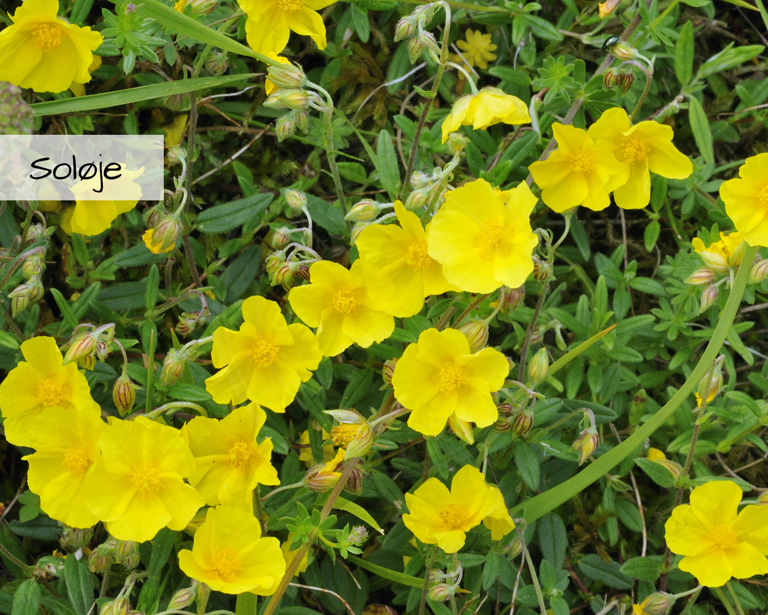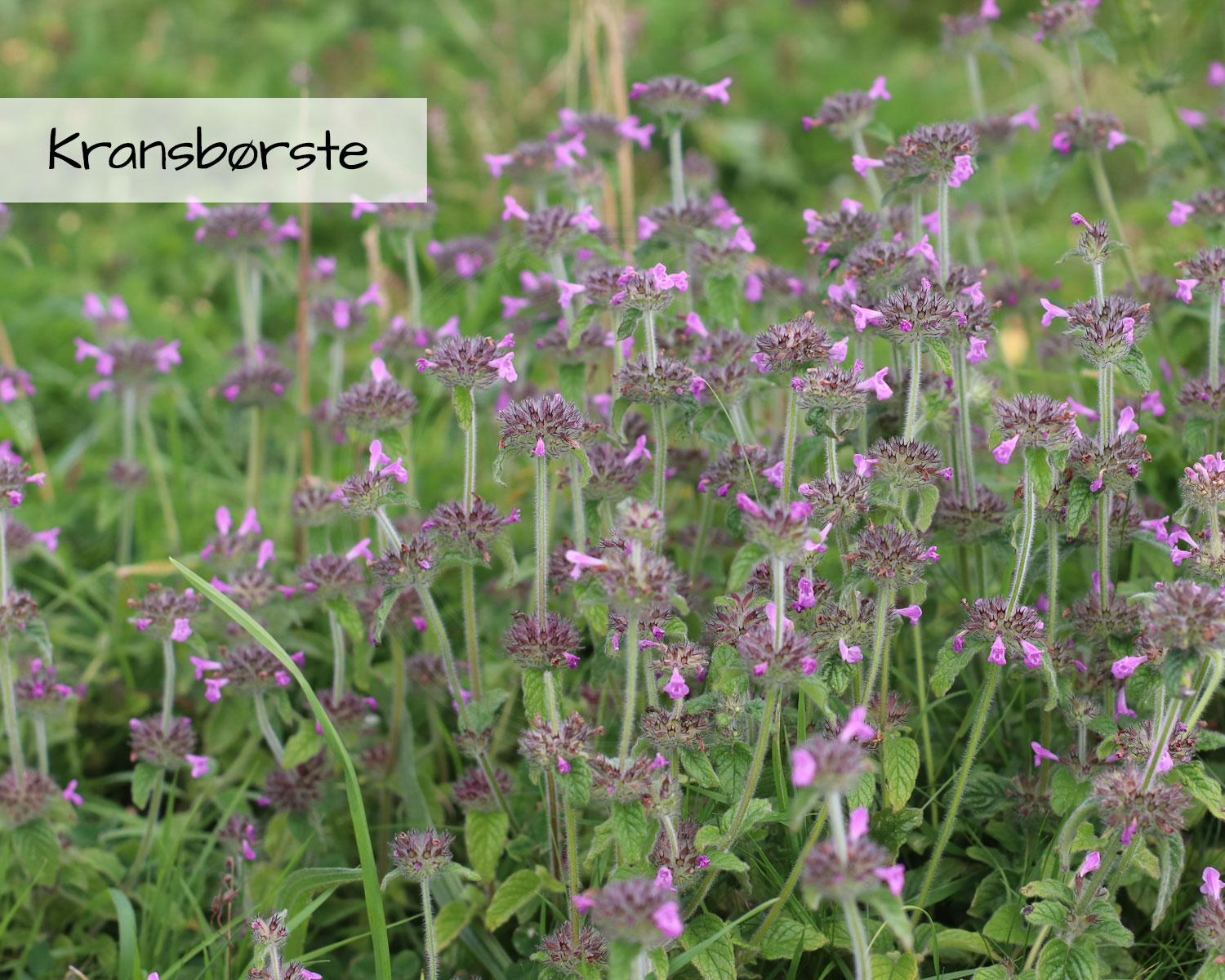 Flerårige planter: Almindelig Brunelle, Prunella vulgaris | Almindelig Hvene, Agrostis capillaris | Almindelig Kællingetand, Lotus corniculatus | Almindelig Røllike, Achillea millefolium | Bakke-Nellike, Dianthus deltoides | Blæresmælde, Silene vulgaris | Bredbladet Timian, Thymus pulegioides | Dunet Vejbred, Plantago media | Engelskgræs, Armeria maritima | Fåre-Svingel, Festuca ovina | Gul Snerre, Galium verum | Høst-Borst, Leontodon autumnalis | Håret Høgeurt, Hieracium pilosella | Kornet Stenbræk, Saxifraga granulata | Kransbørste, Clinopodium vulgare | Liden Klokke, Campanula rotundifolia | Læge-Ærenpris, Veronica officinalis | Mark-Frytle, Luzula campestris | Merian, Origanum vulgare | Pur-Løg, Allium schoenoprasum | Soløje, Helianthemum nummularium | Tormentil, Potentilla erecta