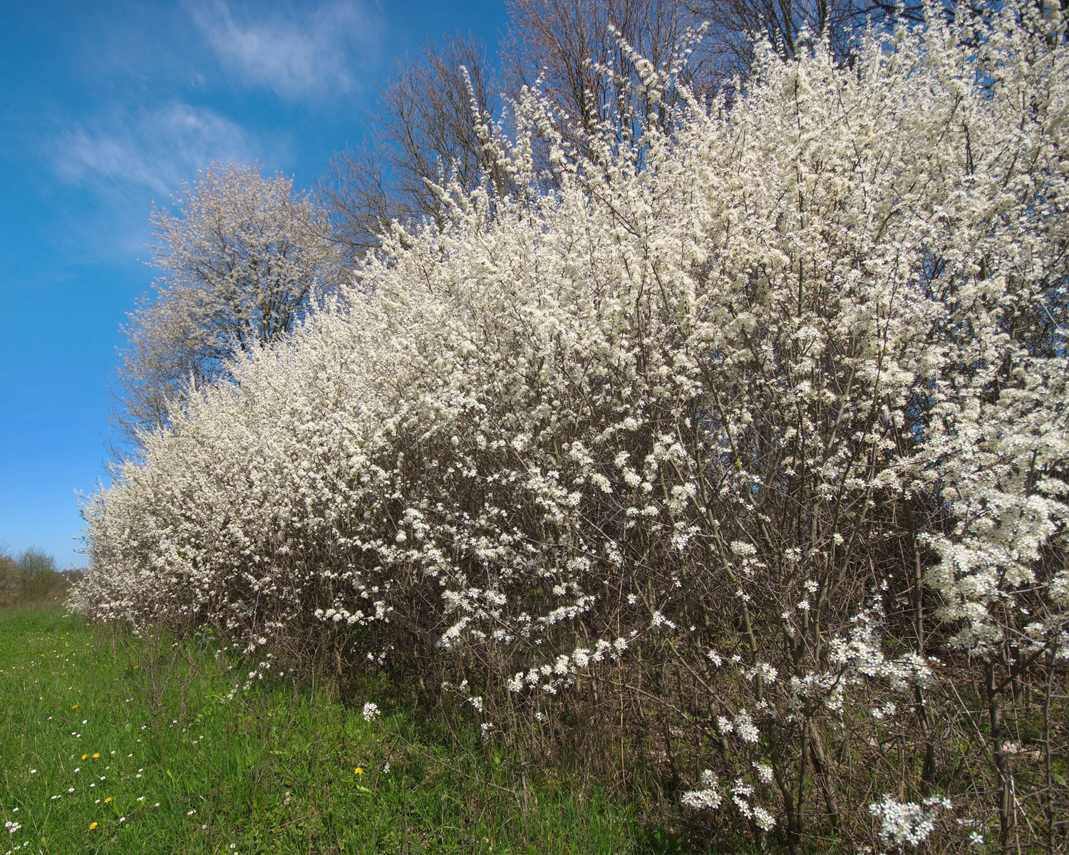 Slåen er en fin hjemmehørende busk hvis blomster er små og tætsiddende. De små hvide blomster dækker nærmest den øverste halvdel af buske. Busken tiltrækker utrolig mange insekter.