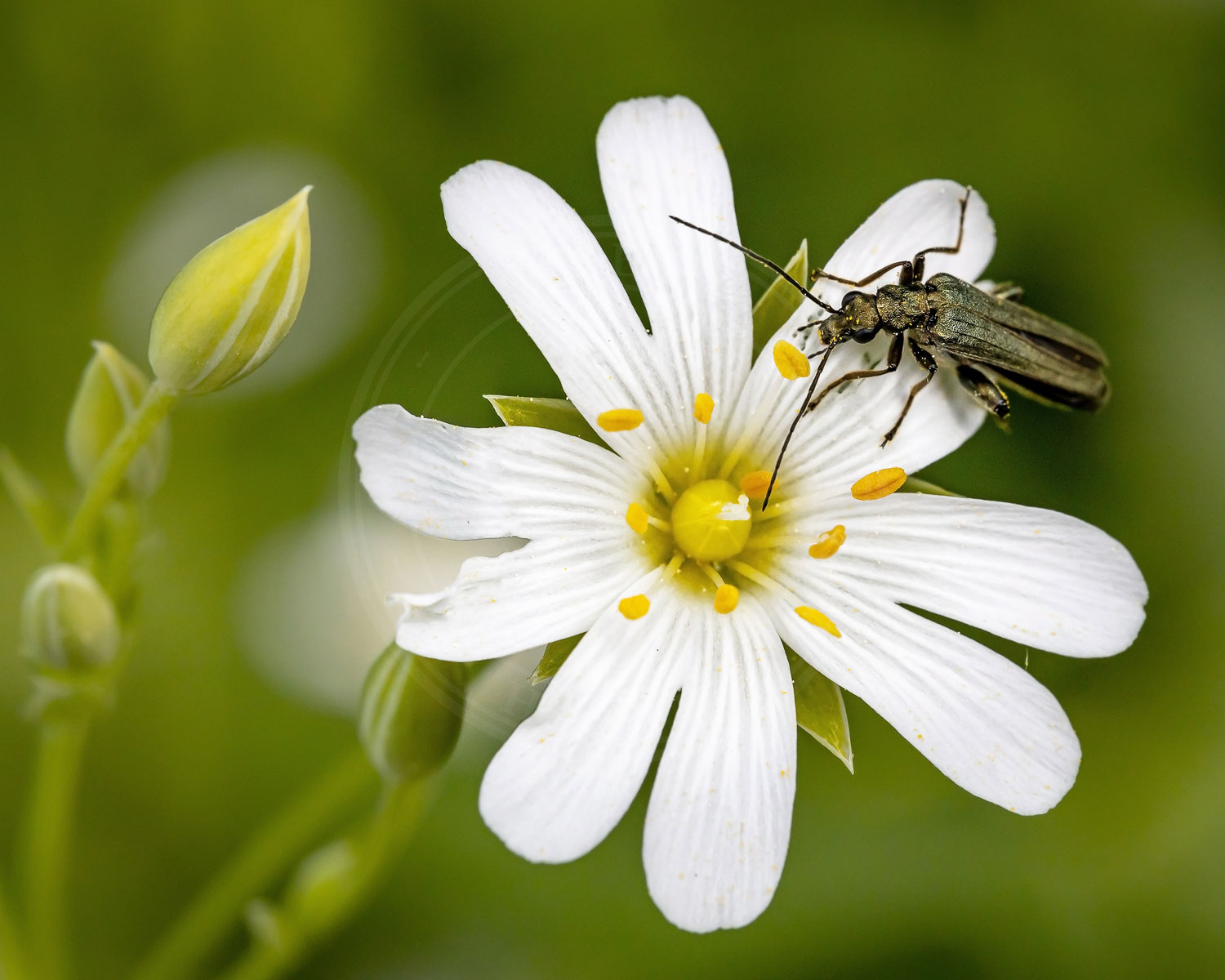 Scrol op og se hvilke insekter der specifikt er afhængige af Stor Fladstjerne, enten ved at leve af blomsten og dens pollen og/eller nektar, eller ved at leve på/i planten.